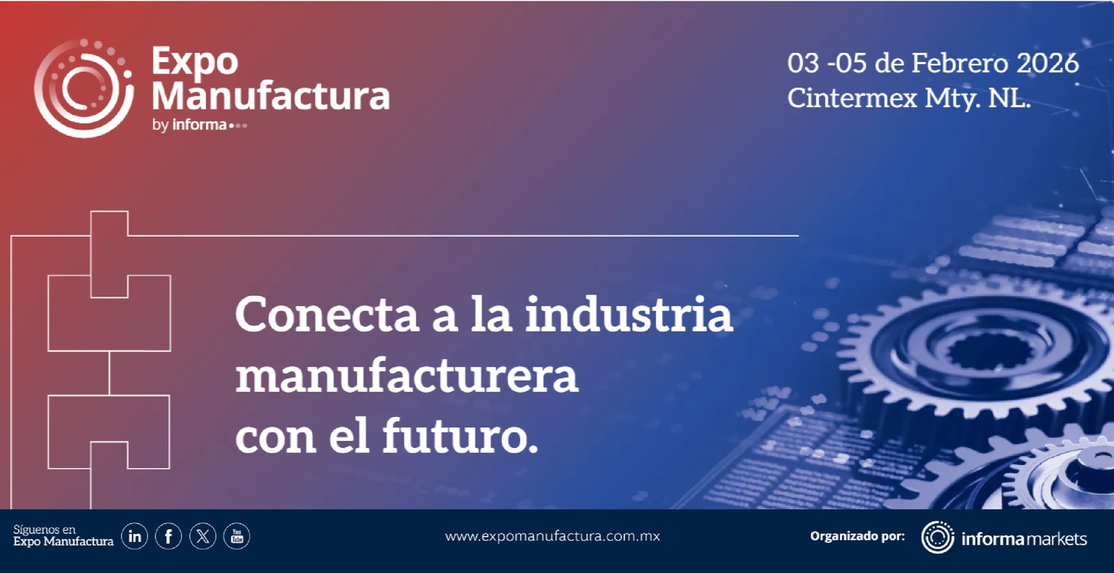 Te invitamos a participar en Expo Manufactura 2026, con la oferta más completa de tecnología para la transformación, soluciones para la industria, maquinaria y la presencia de líderes nacionales e internacionales en el piso de exhibición.